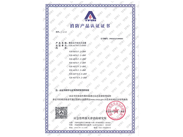 FZX-ACT 係列(貯壓)懸掛式幹粉滅火裝置具(jù)有“響應快、早期報警、滅火快”的特點(diǎn)(內部充裝幹粉為ABC超細幹粉)。具有對保護物無腐(fǔ)蝕,對人體皮(pí)膚和呼吸道無刺激,滅火(huǒ)快,效率高。